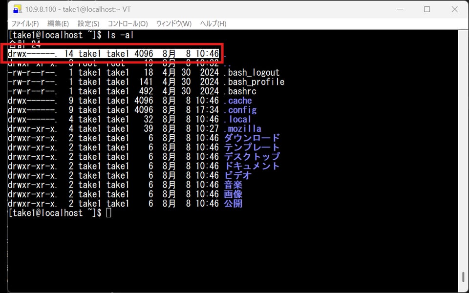 drwx------. 14 take1 take1 4096 8月 8 10:46