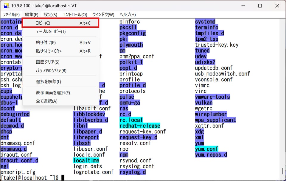 これでWindowsのクリップボードにコピーされます。テキストファイルに貼り付ければ、入力したコマンドやその結果の出力が記録できます。