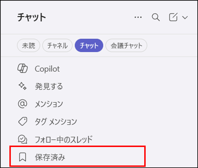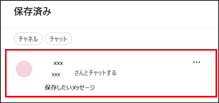 3)左側の「チャットとチャネルの一覧」の上部に「保存済み」が追加されるのでクリック
